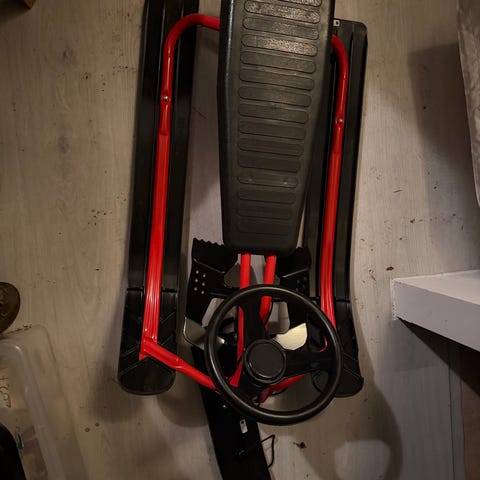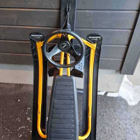 Selger pent brukt Stiga rattkjelke i svart og rød farge.