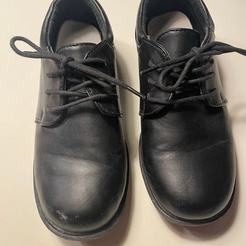 Selger pensko til gutt i størrelse 24. Har brukt de en gang på 17.mai, men var uheldig og snublet på asfalten og fikk skrapet de litt på siden foran. Eller fine og gode sko, gikk fint å ha de på de timene vi var i tog osv.