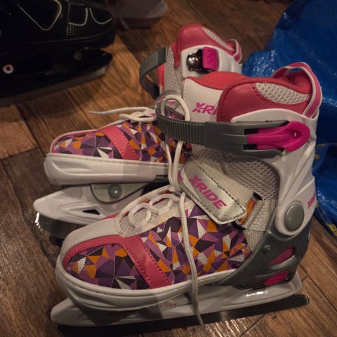 X-Ride PW-32 skøyter for barn i størrelse 29-32Justerbare skøyter med snøring, spenne og borrelås for stabil passform. Overdel i syntetisk materiale med flerfarget mønster i rosa, lilla og hvitt. Polstret innside for økt komfort. Egnet til generell skøytebruk på is for barn.