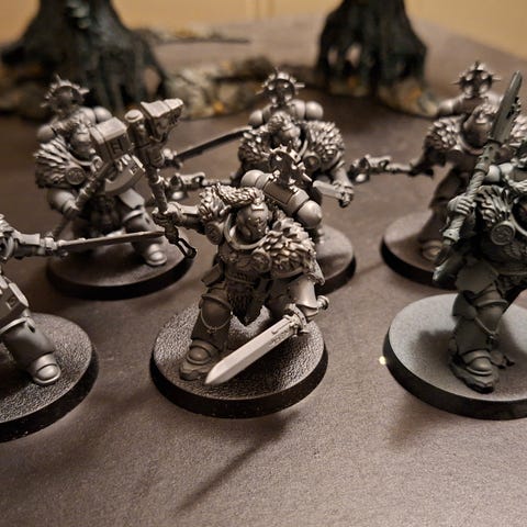 Selger 10 Blood Claws og 5 Assault Intercessors med Jump pack converted fra blood Claws. Kan også slenge med Ragnar Blackmane.