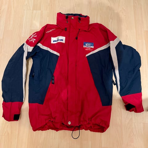 Jeg mener denne ble solgt som en skijakke. Men snittet er kort og den mangler snølås. Den gjør seg nok best som en retro jakke på afterski eller på byen.