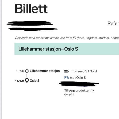 Togbillett Lysaker/Oslo–Stavanger, 1 mars, sovekupé