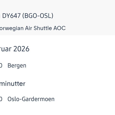 5 flybilletter oslo-bergen 2. mars kl. 19:35