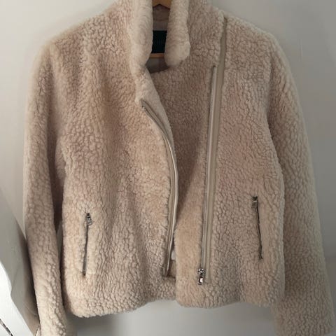 Dear Dharma jakke i semsket skinn for dame i størrelse 42. Jakken er brun med lys, myk fôrkant og innsiden i lammeskinn.. Den har glidelåslukking foran, sidelommer med glidelås og justerbare reimer med spenner ved kragen. Passer som ytterjakke i kjøligere vær og kan brukes til både hverdags og mer pyntede anledninger.