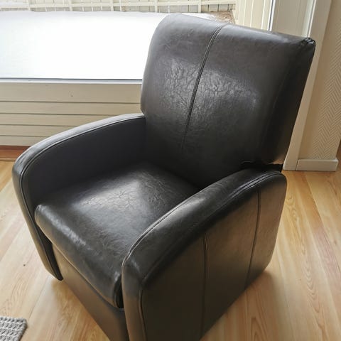 Sort recliner/lenestol til barn. Imitert skinn.