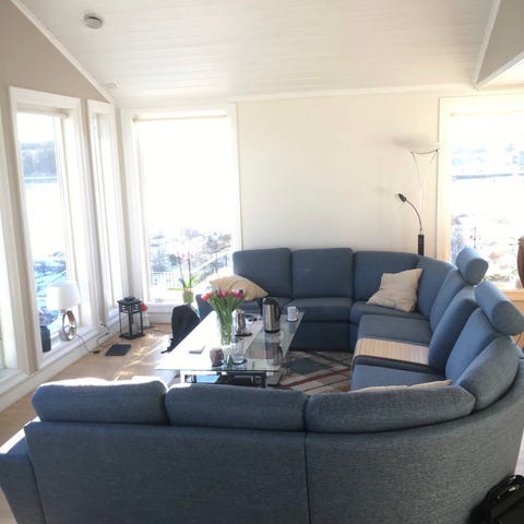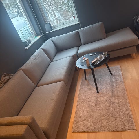 Sofa fra 2018 kjøpt brukt for 2 år siden. Har dessverre fått 2 svimerker på sjeselong delen. Ellers hel og pen, har masse bruk igjen.