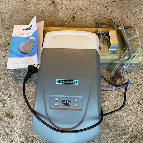 Garasje (garasjeport med portåpner og fjernkontroll, sidedør (ytterdør) og andre materialer selges som komplett.