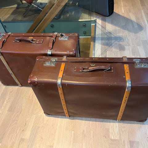 Klassiske reisekofferter merke «Bon Voyage» gis bort. Den minste kofferten passer inni den største, så det er praktisk hvis du planlegger å shoppe når du er på reise.