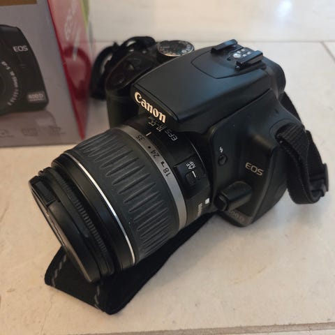 Jeg selger også en kraftigere kamerapakke (Rebel T2i / 550D) med teleskoplinse, video og mye utstyr. https://www.finn.no/recommerce/forsale/item/451852343