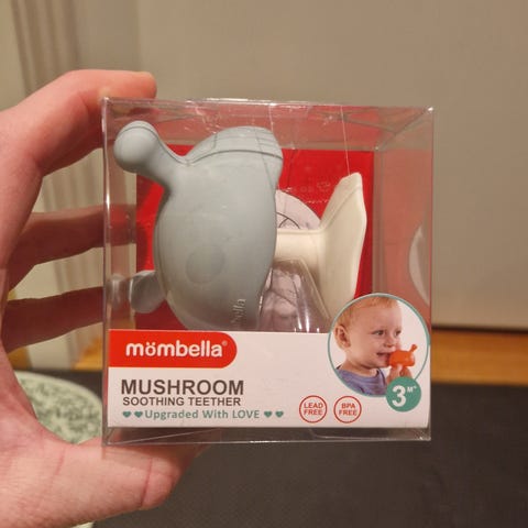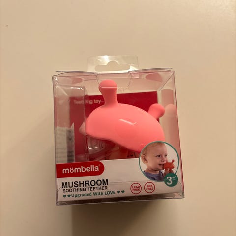 Mombella Mushroom biteleke er laget av 100 % medisinsk silikon, fri for BPA, og er trygg for babyens sensitive tannkjøtt. En liten, men uunnværlig hjelper i hverdagen som gir både baby og foreldre mer ro.