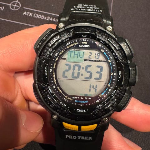Selger Casio ProTrek PRW-2000. Klokken er i grei stand med noe bruksslitasje – se nøye på bildene. Den har fått ny reim. Etter min mening er dette en av de mer vellykkede modellene, siden den ikke er for stor og har en relativt slank profil. Utstyrt med Multi Band 6, Tough Solar og Triple Sensor.