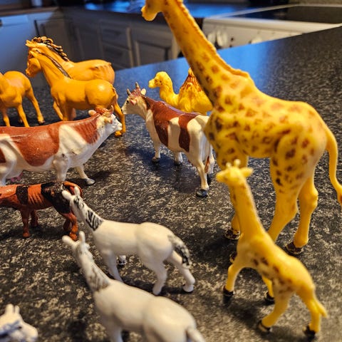 Vintage dyrehoder Kanin, rotte, kylling med sugekopper av britiske Toy's Yard Ltd 1997.