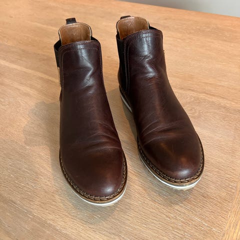 GANT Lydia støvler i størrelse 41. Støvler i brunt skinn med elastisk innfelt parti ved ankelen og drahempe bak med GANT-logo. Overdel og fôr i skinn, med kraftig gummisåle med mønster for bedre grep. Klassisk ankelhøy modell som passer til hverdagsbruk og mer formelle anledninger.