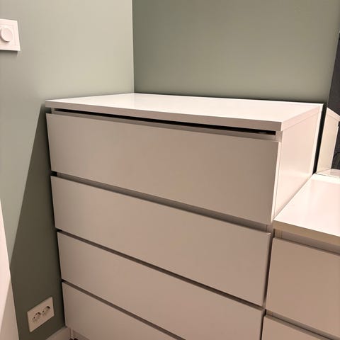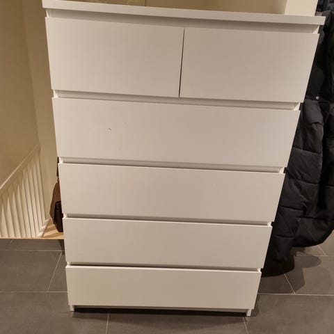 1stk Malm kommode m/ 6 skuffer og glassplate