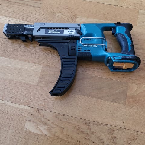 Makita 18v DFR550 gipsdrill for båndskruer mellom 25-55mm. Kan brukes til terrasseskruer og sponplateskruer. Nytt bits. Virker som den skal.