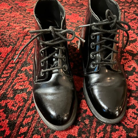 ingen innersåle (du må kjøpe en ny), har en liten ripe etter bruk (se bilder), men kan fortsatt brukes i noen år til)