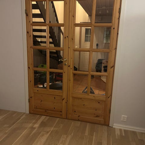 Til fordel for oppusning må en helt fint dobbel innerdør med glass i vike.