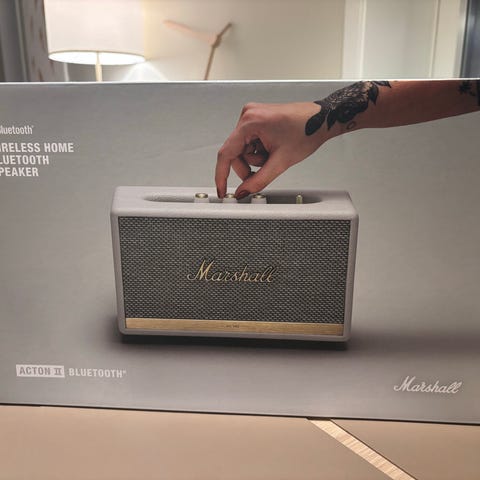 Selger denne flotte smarthøyttaleren, da den ikke brukes slik den burde. Høyttaleren støtter Apple Airplay, Spotify Connect og Google Cast (installasjon via Google Home applikasjon), samtidig som at lydkvaliteten leverer der en smarthøyttaler i denne klassen burde. Marshall har her tatt den populære bluetooth-modellen deres "Stanmore" og lagt til smartfunksjonalitet, som man kan lese mer om i denne anmeldelsen fra Tek: https://www.tek.no/test/i/2GyRRy/marshall-stanmore-multi-room?srsltid=AfmBOoqgdfQeG5OPzBUhja-LGR9-BUpRfBdKtsyMnHuqb86Q1jicSMGe