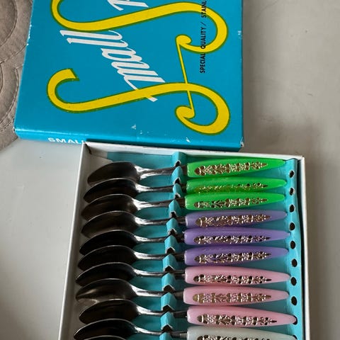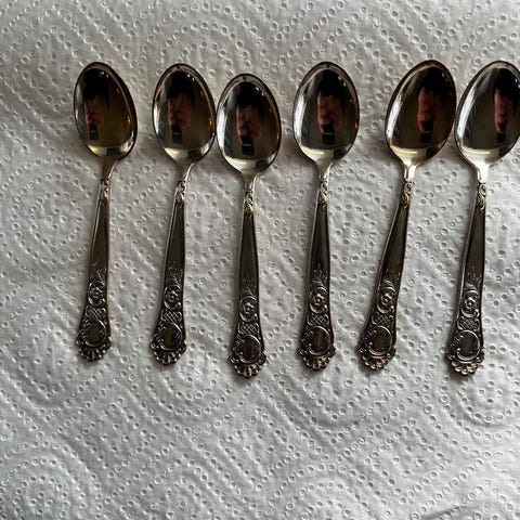 Skjeer dessertskjeer metall med lyse håndtak