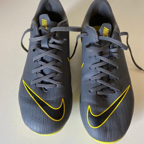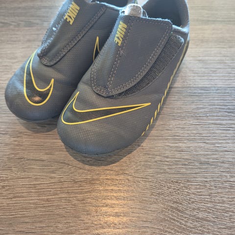 Nike Mercurial barnefotballsko i grå med gule detaljer selges videre. Størrelse 30. Enkel å ta av og på selv siden skoen lukkes med borrelås