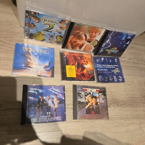 Pakke med flere CD-plater for barn. Inneholder blant annet norske lydbøker og hørespill, samt en musikk-CD rettet mot barn og unge. Sjangerne spenner fra fortellinger og humor til barne- og ungdomsmusikk. CD-ene leveres i standard plastcover slik de vises på bildene.