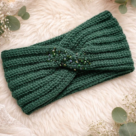 Ny heklet pannebånd og hals til dame. Heklet i drops merino extra fine.