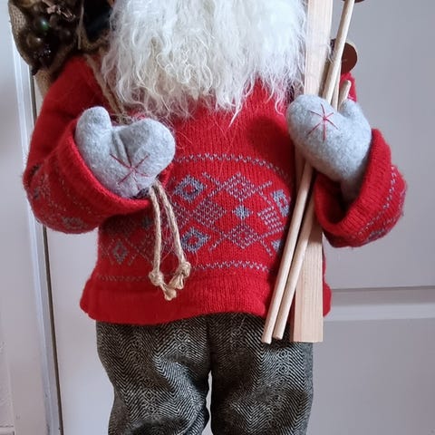 Julenisse stående med stav og slede 45 cm dekorasjon pynt jul