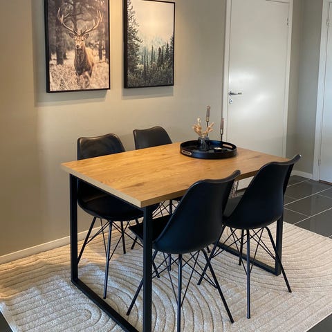 Meget pent, ubetydelig brukt spisebord fra Møbelringen og 8 stoler selges samlet.