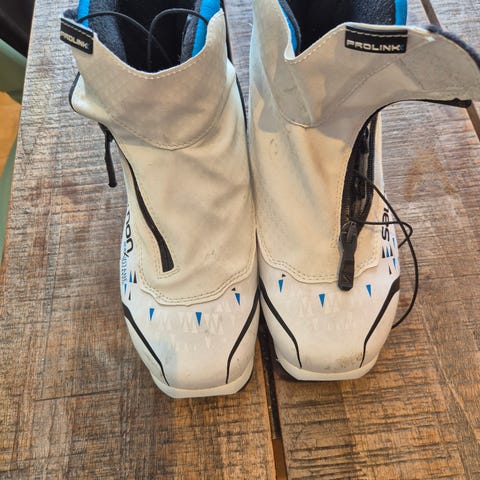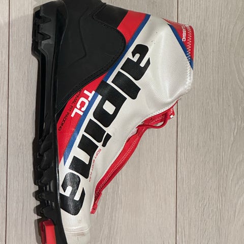 Alpina TCL langrennsstøvler i hvit og rød farge. Støvlene har overtrekksløsning med glidelås foran og snøring under for bedre tilpasning rundt foten. Yttersålen er profilert for godt feste mot bindingene og underlaget ved gange. Egnet til klassisk langrenn med kompatibelt bindingssystem. Passer til bruk i preparerte løyper og treningsturer på ski. Pent brukt i god stand. Lite rift i skinnet over glidlås, er uten betydning for bruk. Selges kroner 300.
