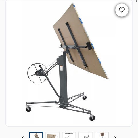 Plateheis gipsheis på hjul for løfting og montering av gipsplater og andre plateprodukter i tak og på vegg. Heisen har manuell sveiv med hjul for kontrollert heving og senking av platen. Justerbar vinkel gjør det mulig å montere både horisontalt og skråstilt. Understell med hjul gir enkel forflytning på byggeplass. Egnet til arbeid innendørs ved montering av himlinger, veggplater og lignende.
