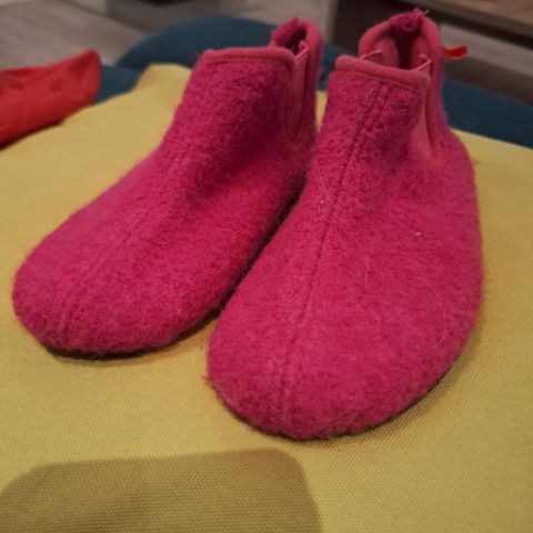 Ulltøfler med mykt skinn bak på hælen selges
