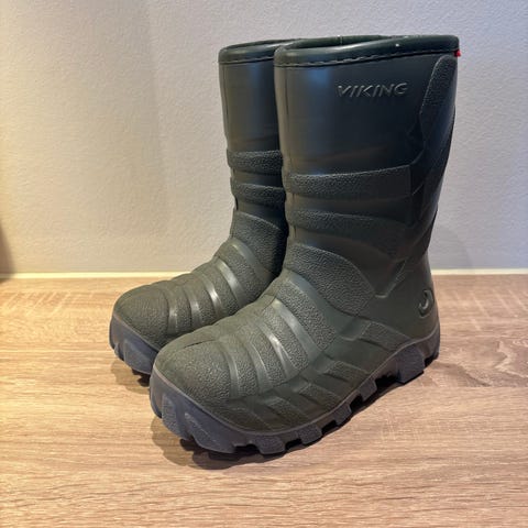 Viking gummistøvler for barn, unisex, i størrelse 30. Støvlene har overdel i gummi og kraftig yttersåle med grovt mønster for godt grep. Innvendig fôr for økt komfort. Passer til bruk i vått vær og på fuktig underlag.