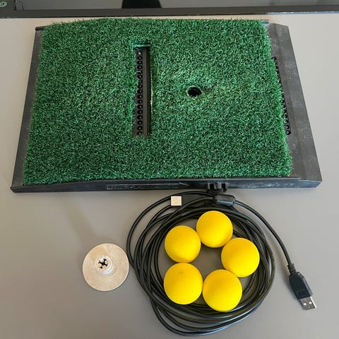 Jeg selger et høykvalitets golfsimulatorlerret på 3×2 meter i hvit polyesterfiber. Perfekt både for innendørs golfklubber og hjemmebruk.