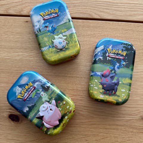 Skal se om det er noe intresse og kjøpe tomme mini tin displays og adventure chest. De er i veldig fin stand og innholder alt uten selve boosterpakkene.