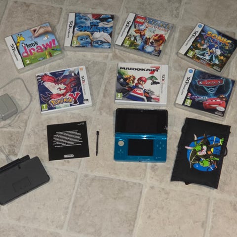 Nintendo 3DS håndholdt konsoll i turkis farge.