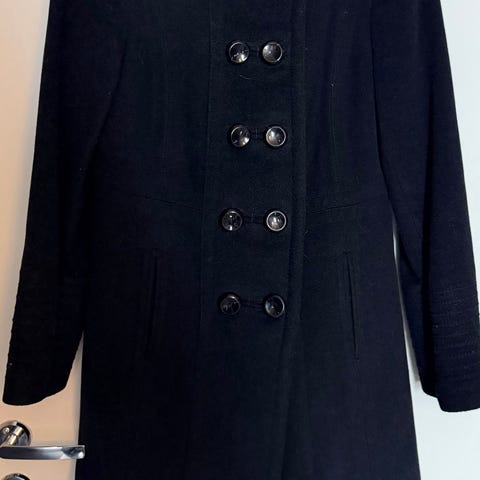 Selger en nydelig marineblå kåpe fra Zara i størrelse S.