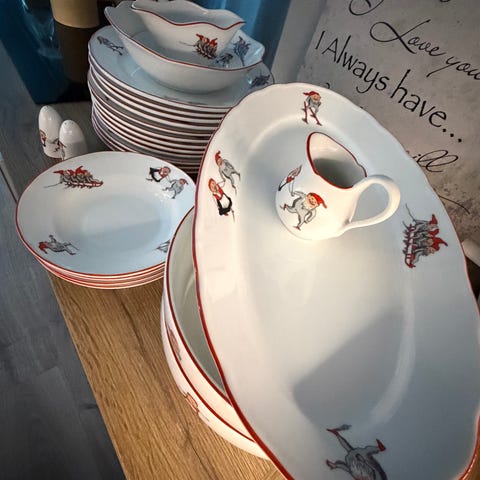 Dette er det klassiske Nisseserviset fra Porsgrunds Porselænsfabrik.