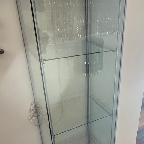 GRATIS - Glass skap m/glasshyller og skyvedør til butikken eller hobbyrommet m.m