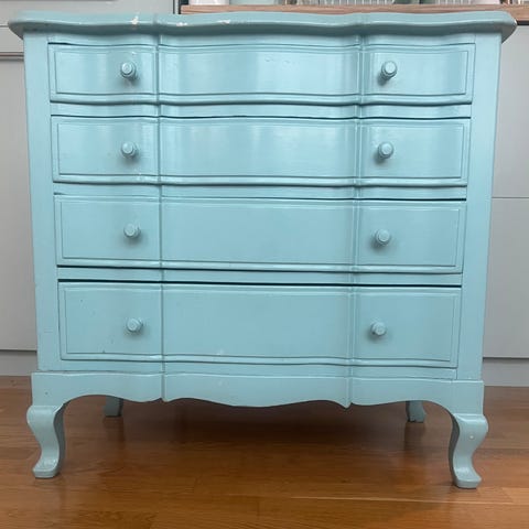 Nett retro kommode fra 50 /60 tallet som måler 70/66/31 cm . Front med 3 buede skuffer og vakre små messing beslag. Ingen skader, men små bruksspor forekommer som forventet etter mange år i bruk.?
