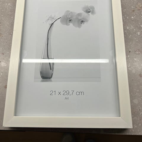 Ny og uåpnet hvit bilderamme fra Clas Ohlson. Passer fint til å vise frem barnetegninger, og rammen åpnes enkelt foran med magnetisk lås.