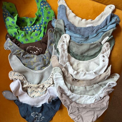 13 pent brukte siklesmekker selges for 120kr. Flekker kan forekomme!😊 Brukt til ett barn.