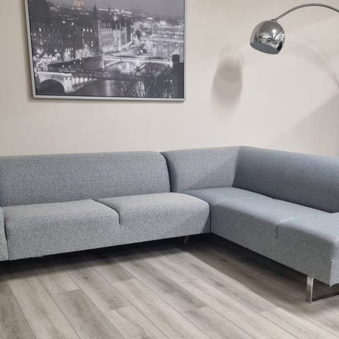 Lys og stilren hjørnesofa med sjeselong i en tidløs gråtone som gir stuen et moderne og harmonisk uttrykk. De brede sitteputene og de myke ryggputene gir en behagelig komfort, perfekt for både rolige kvelder og sosiale sammenkomster. De slanke metallbenene løfter sofaen elegant fra gulvet og skaper et lett og luftig helhetsinntrykk. Rette linjer og balanserte proporsjoner gjør at den passer like godt i minimalistiske som i mer klassiske hjem. En komfortabel og stilren sofa som naturlig blir midtpunktet i rommet.