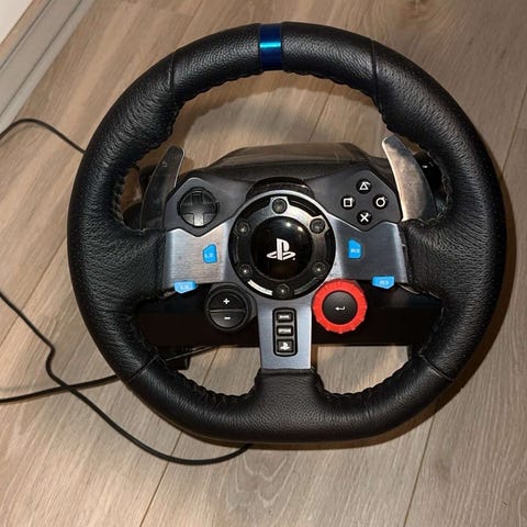 Logitech G29 ratt og pedaler for bilspill. Har prøvd etter jeg kjøpte og slutta. Jeg spiller ikke lenger fordi jeg har jobb å gjøre.