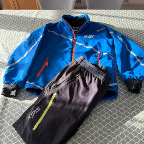 Swix Junior skidress sett i størrelse 128. Sett består av jakke og bukse. Jakken har hel glidelås foran, høy krage og elastiske mansjetter. Buksen har strikk i livet og rette ben med strikk nederst. Fargekombinasjon rød, marineblå og hvit. Egnet som skidress eller yttertøy til barn/junior.