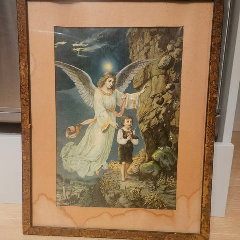 Bilde av engel og barn med ramme.