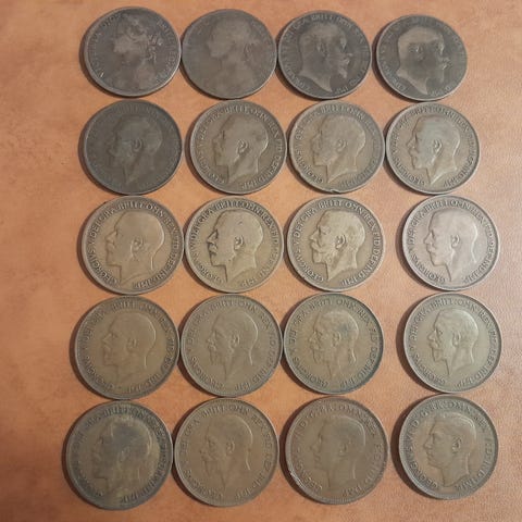 15 sølvmynter Haakon VII 10 ører og 50 ører 1912-1919
