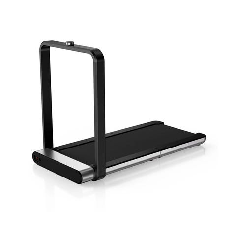 Sammenleggbart gåbånd i svart farge. Båndet har rekkverk/bøyle som kan felles opp, og et kompakt design som gjør det enkelt å oppbevare stående eller liggende. Fronten har et enkelt display for visning av treningsdata. Egnet til gange og lett trening innendørs, for eksempel hjemme eller på kontor.