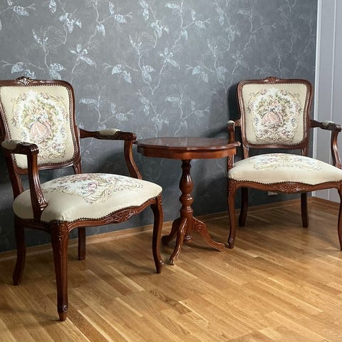 2 stoler og bord i rokokkostil
