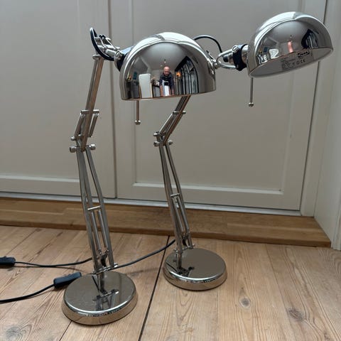 IKEA, lampe, bordlampe, stålampe, krom, sølv, skinnende