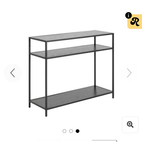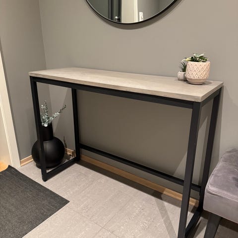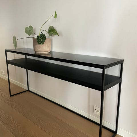Svart konsollbord perfekt til oppbevaring av dekorasjoner, bøker, bilder mm.
